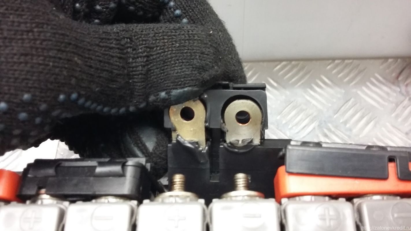 Изловчился, достал ящик с контактором и ЭБУ без снятия всей батареи. Не так уж и сложно, кстати. Нужна только головка на 10 с хорошим удлинителем, сантиметров на 30, чтоб открутить дальнее крепление чемодана. Диагностика, которую предлагал TechDoc сложностью никогда не отличалась - http://www.autocats.ws/manual/lexus/gs450h/rm02e1ru/repair2/html/frame_rm0000025d6003x.html. Прозвоните контакты реле и если нет замыкания, замените блок преобразователя. Прозвонил - хрен. На следующий день я уже был с преобразователем на руках. Удалось достать его всего за 15 тыс рублей, что считаю для него недорого. Установил исправный блок, собрал обратно чемодан, прикрутил на место, собрал салон, все короче как у людей. Поехал на тестдрайв. Проехав километров 10, вернулся в гараж и словил чек. Посмотрел какой и ужаснулся. Все тот же P07AF и в добавок "Battery block 11 become weak" (блок 11 вот-вот подохнет). Не придал значения, пошел спать. На следующий день решил прокатиться еще разок. Проехал километров 5 и словил сначала зеленку (полностью заряженный аккумулятор), а затем и чек. Ноута и сканера не было, поэтому я сразу развернулся и поехал в гараж. Пока разворачивался машина вообще встала. Быстро перезагрузив авто на перекрестке, я двинул дальше. Так я останавливался каждые метров 500-700. Вентилятор батареи гудел как больной. Приехал, снова в сканер - все тот же одиннадцатый блок. Снял батарею, начал осматривать, уже прикидывая количество геморроя, которое обещала разборка батареи на элементы. После осмотра пришел в ужас. Один из мостиков между элементами (как раз в 11 блоке)вообще не был прикручен. Висел на шпильках просто. (лох!)